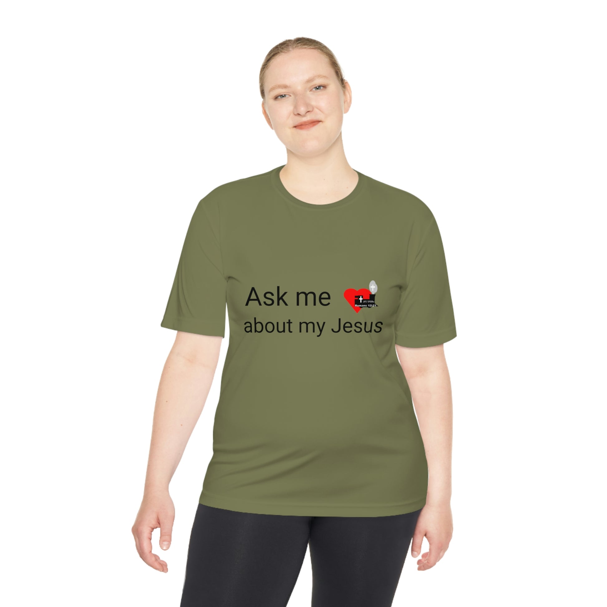 LifeStation Ask me about my Jesus Unisex Moisture Wicking Tee